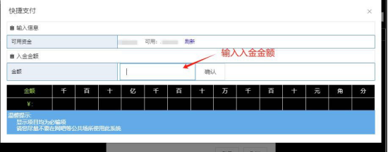 5、绑卡成功后,以后入金,只需点击右上角快捷支付,输入 资金密码,进入快捷入金界面。