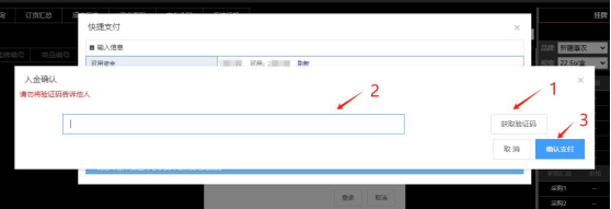 6、 输入入金金额,点击确认,进入短信验证码确认界面。