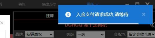 8.、右上角提示入金支付成功,稍等(正常情况一分钟内),
